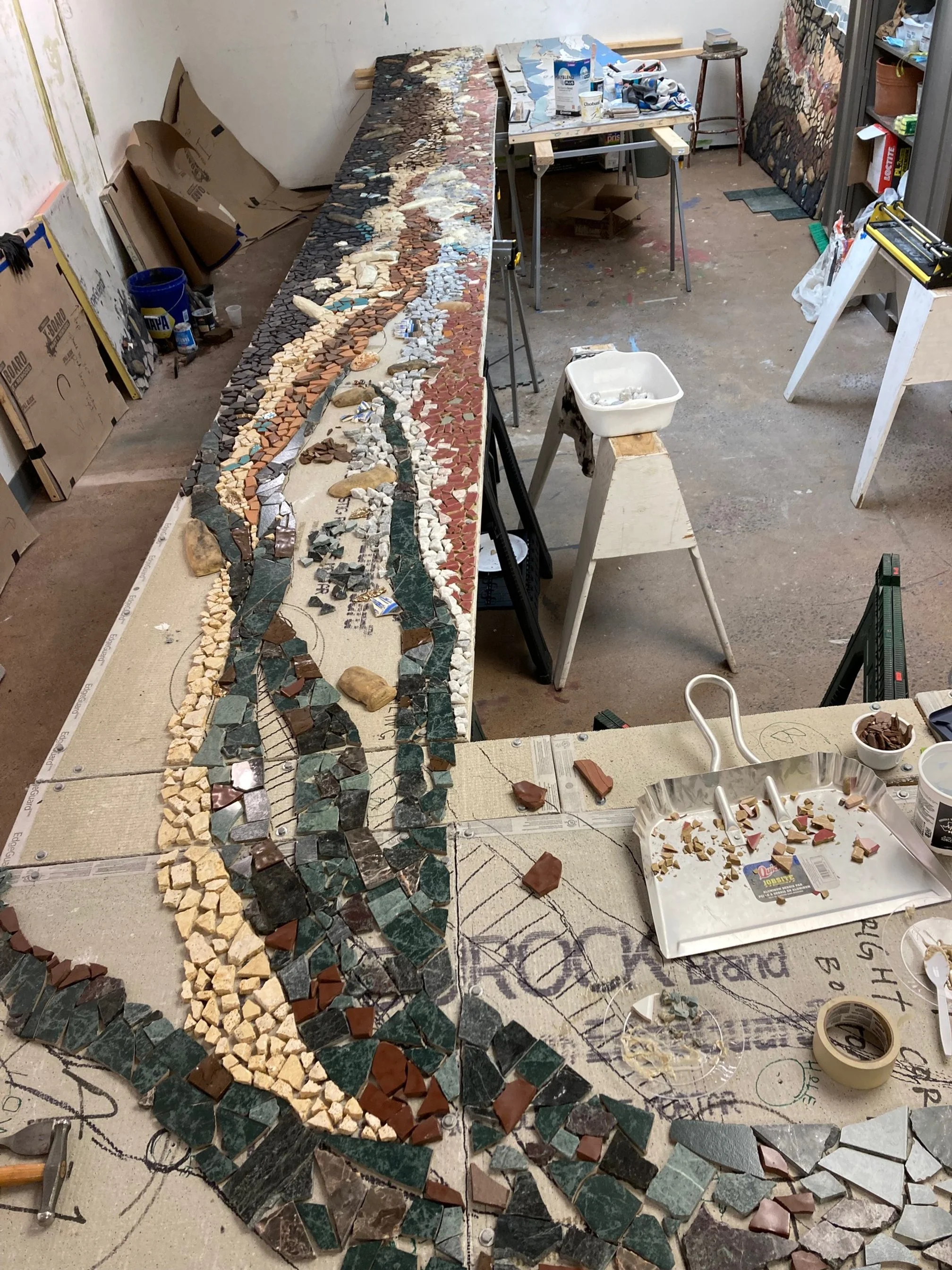 Mastodon close up, part of the extinct mammals mosaic by Mi Nawabutsitthirat.